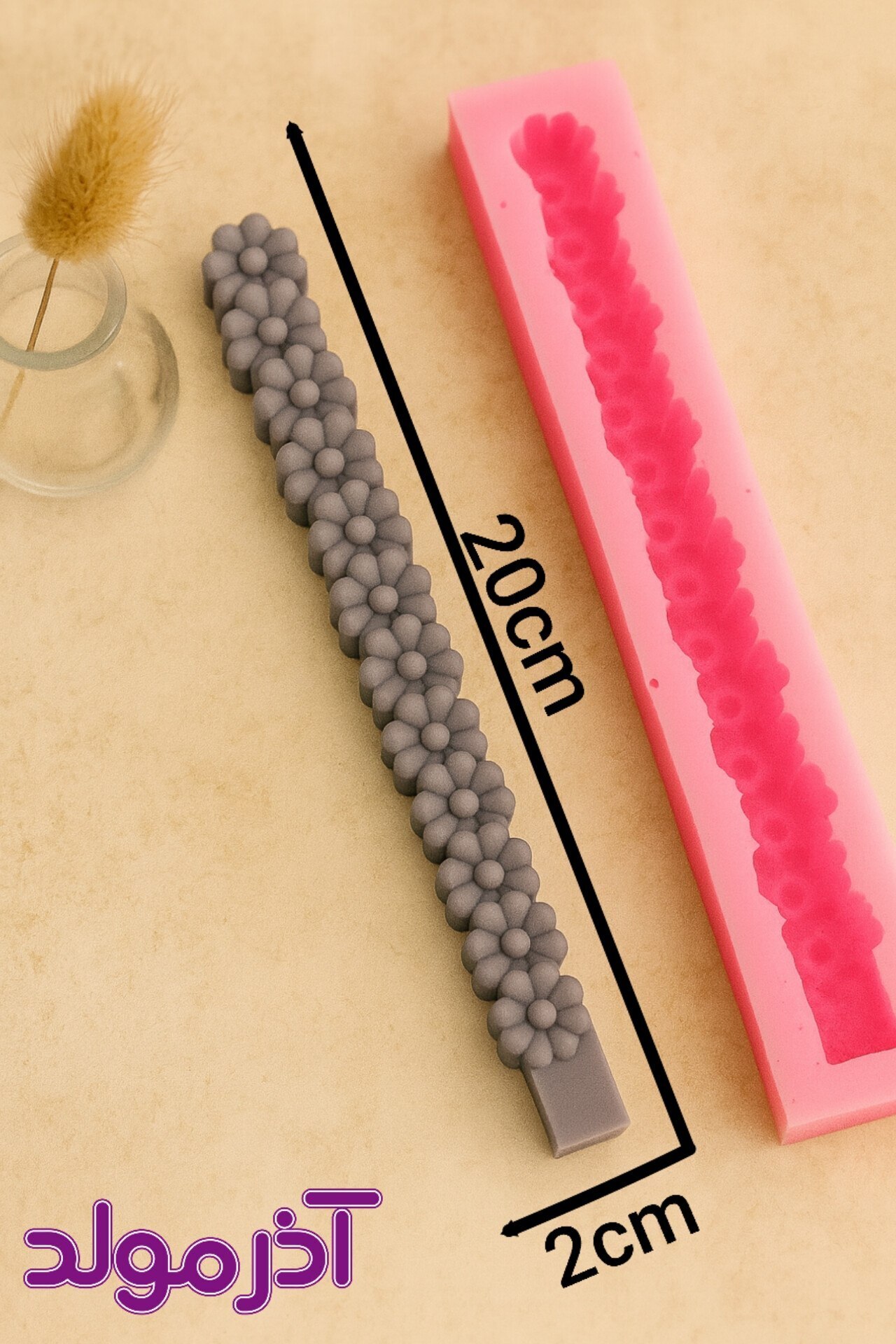 قالب سیلیکونی قلمی گل مارگاریت و قلب