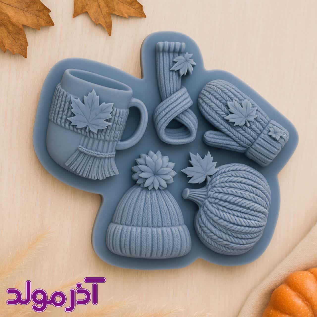 قالب سیلیکونی ست پاییزی زمستونی ۵ تکه شامل کلاه ماگ، دستکش، شال گردن و کدو، با طراحی دقیق و جذاب، گزینه‌ای کامل و ایده‌آل برای شمع‌سازی است. این مجموعه زیبا که الهام‌گرفته از تزئینات فصلی پاییز و زمستان است، جلوه‌ای گرم، دکوری و خاص به آثار شما می‌بخشد. سیلیکون باکیفیت و انعطاف‌پذیر آن، امکان تولید آثار دقیق و با جزئیات بالا را فراهم می‌کند.
